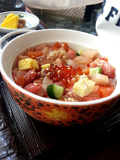 前菜、茶碗蒸蛋、雜錦壽司、迷你刺身飯、麵豉湯、甜品